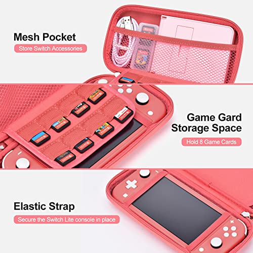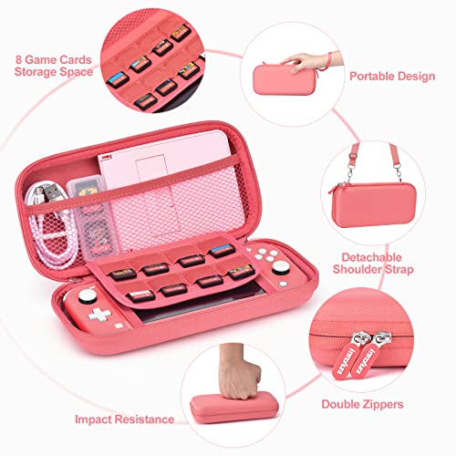 Switch Lite Hülle – innoAura 17 in 1 Switch Lite Zubehör mit Switch Lite Tasche, Switch Spiele Aufbewahrung, Switch Schutzfolie für Switch Lite, Switch Ständer, Switch Joystick Kappen(Koralle)