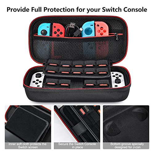 Tasche für NS Switch / Switch OLED – Younik Upgrade Version harte Reisetasche mit größerem Stauraum für 19 Spielkassetten und anderes NS Switch Zubehör