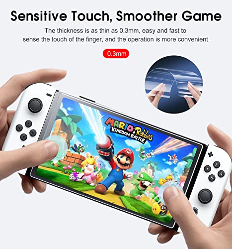 📢 【Ultra dünn und hart】: Die Dicke von 0,33 mm ist ultradünn, aber hart genug bis zu 9h Härtglas, der einen Switch-OLED Bildschirm mit starkem und vollem Schutz vor Kratzern, Staub und Anti-Pause bietet.