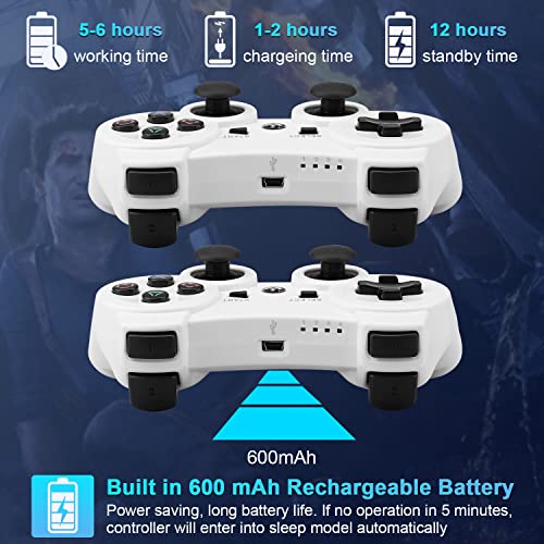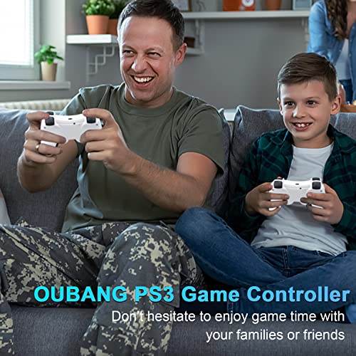 OUBANG Wireless Controller für PS3, Joystick für Playstation 3, Bluetooth Gamepad Remote mit Rechargeable 600 mAh Battery Dual Vibration Joypad, Weiß